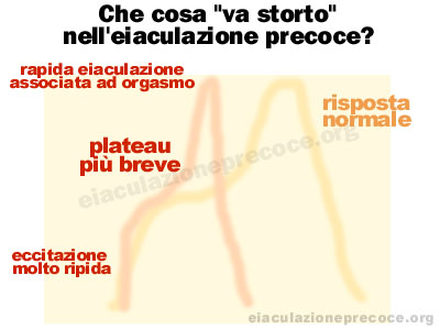 Quali sono le più importanti differenze nella risposta sessuale maschile negli individui normali rispetto a quelli con eiaculazione precoce? In sostanza, un uomo che soffre di eiaculazione precoce ha una fase di eccitazione molto ripida, un plateau più breve, e un’eiaculazione più rapida (associata all’orgasmo) rispetto a un individuo normale. Pur essendo queste conoscenze consolidate, l’eziologia (la causa) esatta della eiaculazione precoce non è nota.